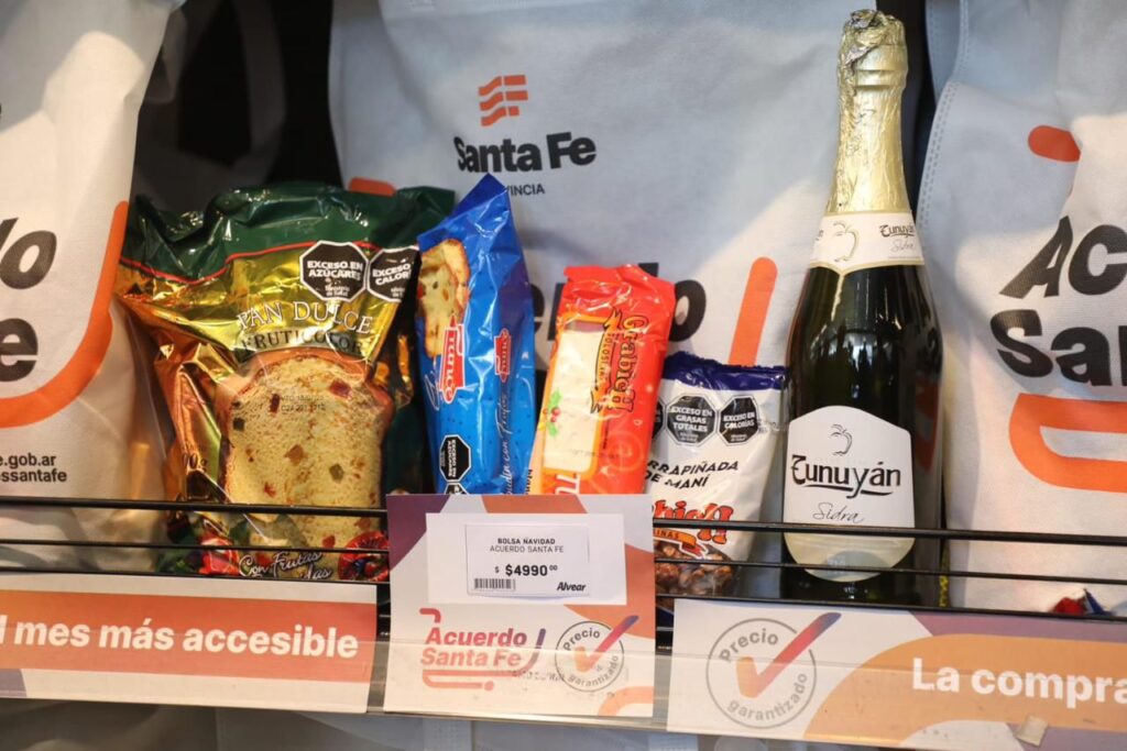Acuerdo Navidad ofrece cinco artículos a 4.990 pesos, un valor de entre un 30 y 40% inferior al precio de mercado. También se podrá conseguir un pack para armar el árbol de Navidad a 22.990 pesos. “Aquí a no hay un Gobierno que pone topes máximos ni mínimos de precios, no subsidia nada, sino que es un acuerdo entre el sector público y el sector privado para beneficiar a los santafesinos”, destacó el ministro Gustavo Puccini.
