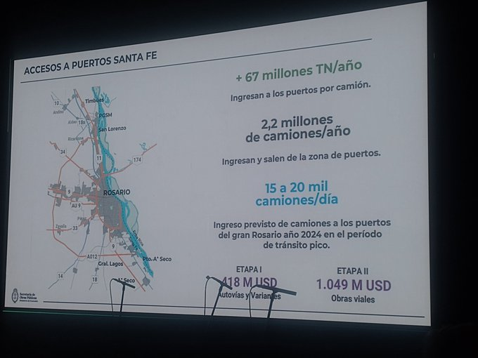 Ayer, en el marco de la convención anual de la Cámara Argentina de la Construcción, el secretario de Obras Públicas de la Nación, Luis Giovine, hizo público el «acuerdo y total apoyo a la concesión a Santa Fe de rutas nacionales en tramos de accesos a puertos de Rosario con futuro mantenimiento por peaje».