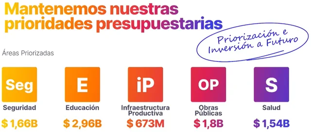 Según explicó Olivares, el Presupuesto provincial continuará con el equilibrio fiscal y priorizará el gasto en Seguridad, Educación, Infraestreuctura productiva, obras públicas y Salud.