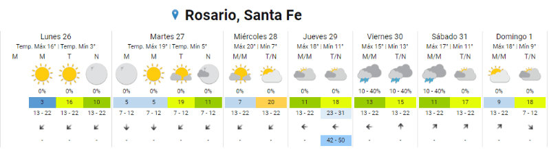 Este lunes y jueves se reportará un anticipo de primavera con hasta 20 grados de máxima. El viernes llegarían nuevamente las tormentas a la región que anticiparían la tormenta de Santa Rosa.