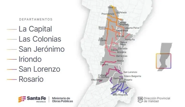 El gobierno de Santa Fe anunció la reparación de rutas provinciales en los departamentos Rosario, San Lorenzo, La Capital, Iriondo, San Jerónimo y Las Colonias. Las obras previstas comprenden 58 tramos de 38 caminos, en una extensión total de 1.100 kilómetros, con un presupuesto estipulado de $ 3.839.960.476 y un plazo de ejecución de 7 meses.