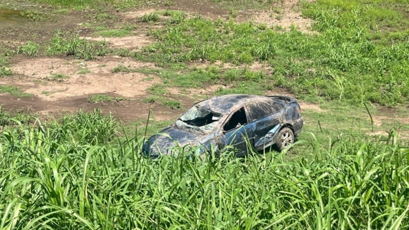 El auto, que habría perdido el control mientras circulaba en sentido hacia Rosario, desbarrancó varios metros hasta quedar averiado entre pastizales.