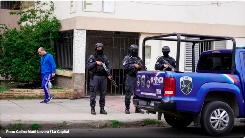 Efectivos de la Policía de Investigaciones y de la Dirección de Asuntos Internos realizaron más de 30 allanamientos en la zona de Grandoli y Sánchez de Thompson, en barrio Municipal, en la zona sur de Rosario, en el marco de una investigación por extorsiones, amenazas y microtráfico de drogas, delitos en cuales estaría vinculada gente de la banda de René Ungaro, preso en el penal federal de Marcos Paz.