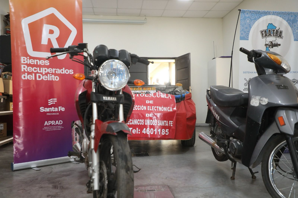 El Ministerio de Gobierno e Innovación Pública de Santa Fe, a través de la Agencia Provincial de Registro, Administración y Destino de Bienes y Derechos Patrimoniales (Aprad), donó este martes motos a la Asociación de Propietarios de Talleres Mecánicos de Automotores y Afines (Aptma) de Santa Fe. De este modo, el Gobierno de la Provincia continúa con la entrega de bienes decomisados y vinculados a actividades ilícitas, a entidades de la comunidad para su reutilización con fines sociales.