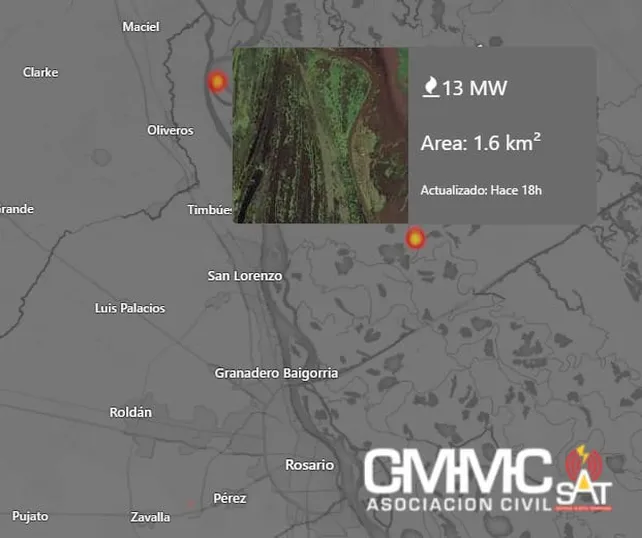 Según informó el Centro de Monitoreo Meteorológico y Climático (CMMC), ayer también se registraron focos en las islas de Entre Ríos, uno a la altura de San Lorenzo y otro entre Oliveros y Maciel.