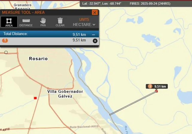 Según confirmó a La Capital Marcos Escajadillo, secretario de Protección Civil provincial, esta mañana el principal foco se registró en las islas de Entre Ríos, a unos 9,5 kilómetros de la costa rosarina, a la altura de Villa Gobernador Gálvez.