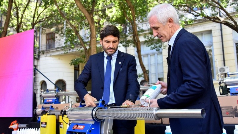 El gobernador Maximiliano Pullaro encabezó este lunes el acto de entrega de insumos y equipamiento para las acciones de prevención que se llevan adelante en el marco del programa Objetivo Dengue en 120 localidades de los departamentos Rosario, Caseros, Constitución, San Martín, San Jerónimo, San Lorenzo, Iriondo y Belgrano.