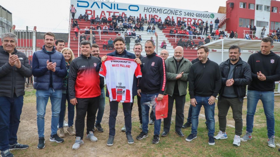 El gobernador estuvo acompañado por el ministro de Gobierno e Innovación Pública, Fabián Bastia; los intendentes de Rafaela, Leonardo Viotti y San Vicente, Gonzalo Aira; el diputado provincial Juan Argañaraz y el presidente del Club Atlético de Rafaela, Andrés Boidi.