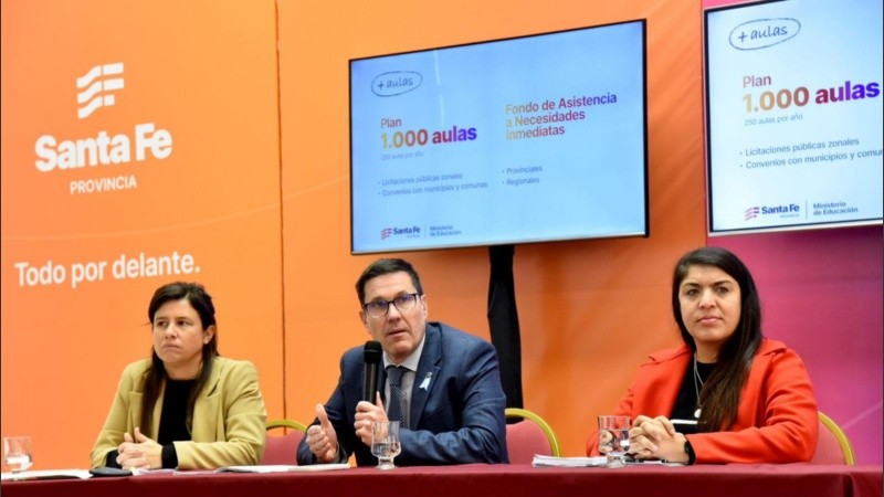 Recordó que “en marzo lanzamos el Abre Escuela y establecimos distintos mecanismos para construir mil aulas, uno de ellos era convenios con municipios y comunas”. “También estamos trabajando en licitaciones, sobre todo en lo que son las grandes urbes, que son los lugares que más demanda tienen de infraestructura y que necesitan un abordaje diferente. Todas estas intervenciones nos van a permitir dar un salto de calidad y llegar a muchas escuelas que hace años venían reclamando esta necesidad y que tienen funcionamientos que no son adecuados en aulas que no están preparadas para ser aulas”, detalló.